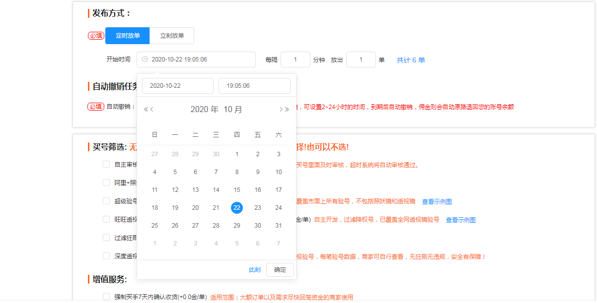 设置补单的单数和放出时间,自动定时放出