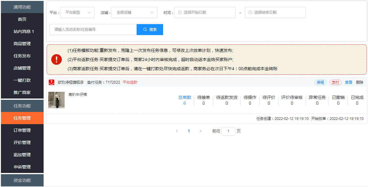 多种补单任务类型,销量单、隔天单、流量单
